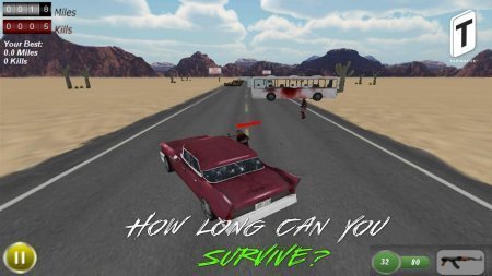 Drive with Zombies 3D - игрушка на платформе аndroid, в которой тебе нужно отбиваться от групп, зомби, которые жаждет забраться в автомобиль. Передвигайся на высокой скорости для того, чтобы они не успели заскочить, а если так произойдет, то отстреливайся от них с применением собственного орудия. Копите по дороге газовые сосуды для того, чтобы непосредственно выжить, а иначе у тебя закончиться топливо. Преимущества -- семь машин -- всеходовые джипы, грузовики, машины гоночного типа, полицейского и масса прочего. Шесть типов орудия - АК-47, Minigun, пистолет-пулемет, винтовка и М-16. Масса успехов и поощрений. Три формата зомби.