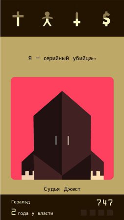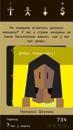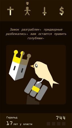 Reigns – занимательная карточная стратегия, в которой тебе необходимо сыграть образ короля. Все началось с того момента, когда ты устранил нынешнего короля, и непосредственно занял его место. И теперь твоя жизнь стала сплошным адом, тебе необходимо держать лад между четырьмя странами, и есть хотя бы одна из них упадет на дно, ты будешь проигравшим. Все что тебе необходимо это вести ответы на вопросы, пролистывая карты в разные стороны. И не забывай, что от принятых тобой решений зависит существование королевства и твоя судьба тоже.