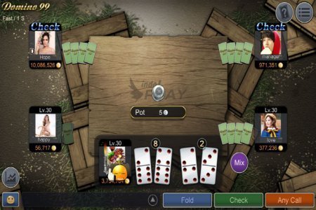 NEW Mango Domino 99 – QiuQiu – симулятор домино на вашем устройстве. В этой игре есть возможность сразиться с друзьями или играть с соперниками со всего мира. За одним столом могут играть до 7 участников. Каждому участнику партии дается возможность составить из 4 фишек, разные композиции, если Вам необходимо, то можно взять дополнительные. Побеждает тот, кто первый останется без фишек. Мы можете использовать любые комбинации, которые возможны в игре. Во время игры Вы можете общаться со своими оппонентами. Русскоязычная версия игры отсутствует. Выстройте свою тактику и окажитесь победителем. Поставьте свой рекорд в рейтинговой таблице.