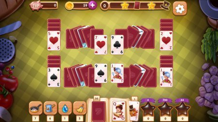 Tasty Solitaire – занимательная игрушка рассчитана на всю семью, в которой тебе необходимо перемещается по различным странам и разлаживать пасьянсы. В данном проекте ты будешь выступать в облике повара, которому нужно раскрыть для себя все кухни мира и наловчится делать все шедевры кулинарии. Для того чтобы помогать собственному молодому повару тебе необходимо прямо на рабочем столе разлаживать пасьянс из представленных карт, верно собранный пасьянс отправит тебя в следующую страну. Исполни установленные перед тобой задачи и копи все карты на представленном столе в единственную колоду, перемещаясь постепенно дальше и дальше по мировой карте. Принимай хорошие бонусы за каждый качественно пройденный уровень. Игрушка не русифицирована.