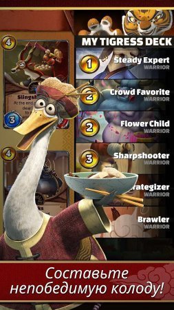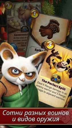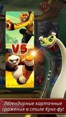 Kung Fu Panda: BattleOfDestiny –проект на системе андроид, разработанный по сюжету одноименного мультика где ты снова столкнешься с уже известными персонажами. В данном проекте именно ты будешь принимать личное участие в кунг-фу боях с пользователями с разных уголков мира. Набери собственную коллекцию карт, которая будет содержать в себе разносторонних персонажей, военных приемов и орудие. Кинь вызов самым лучшим пользователям и боритесь на представленной арене, используя для сражения собственных самых классный бойцов. Играй с товарищами и построй собственную стратегию проведения боя, карабкаясь на самую вершину лидерской таблички. Разработай собственный удивительные карты и принимай важные призы.