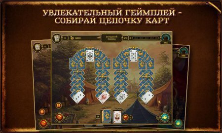 Рыцарский пасьянс 2 -- замечательный пасьянс заправленный таким себе антуражем старинных веков и доблестных рыцарей. Звание самого мощного рыцаря достанется очень достойному, мощному и уважаемому рыцарю. Одолей страшного дракона, который оберегает все золото старинного и почетного королевства. Тебе нужно пройти сквозь двенадцать неимоверных локаций и окончить сто двадцать уровней и после чего поразить сердце представленного дракона. Но помни что это все-таки пасьянс. В течении проекта с тобой будет приятная, легкая музыка.