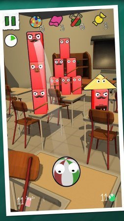 Bubble Blast Knockdown – событельная игра на андроид, в ней вы должны кидать мяч в строения состоящие из блоков прямоугольной формы. Попав в школу каждый класс, приготовит вам различные конструкции из блоков, какие вам потребуется сбить. Бросайте мяч метко, сбив строение, вы наберете очки, больше очков больше преимуществ. Передвигаясь по школьным кабинетам уничтожайте все строения находящиеся там одним ударом. Определить силу удара и путь полета мяча можно всего лишь проведя по экрану пальцем. Применяя различные усиления и вознаграждения уровень проходится за считанные минуты.
