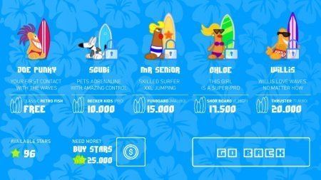 The Wave Surf Tap Adventure – веселенькая игрушка на систему андроид, в которой ты будешь непосредственно помогать серфингисту, нестись по волнам. Данная игрушка окунет тебя в замечательную атмосферу жаркого лета, где ты будешь руководить занимательным серфингистом. Коснись своего дисплея в необходимый момент для того чтобы персонаж производил прыжки обходя неприятных медуз, морских звездочек и прочих преград на дороге. Серьезно смотри за дорогой и не пропусти по дороге своего перемещения массу монеток, а также бонусов, которые помогут тебе дальше преодолевать трудности. По ходу передвижения собирай денежки и потрать их на приобретение новенького серфинга и раскрытие занимательных персонажей.