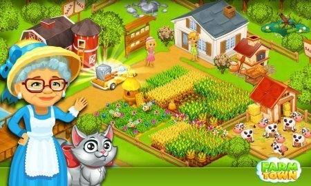 Farm Town: Happy City Day Story / Ферма Бесплатно с Барашками - Это игра с качественной яркой графикой. Игрок на ферме изначально получает старый сарай, несколько грядок, амбар с небольшим количеством семян. Всё это необходимо превратить в процветающее фермерское хозяйство. Возможности практически не ограничены. Можно осваивать новые территории, продавать выращенные продукты. Строить заводы. Докупать новых животных. Условия игры меняются каждые пять минут. Существенным отличием является то, что ферма только часть соседнего города. И от дел на ферме зависит и процветание всего города. К сожалению, пока не русифицирована.