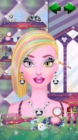 Monster Beauty Salon – игра, предлагающая представить себя в роли стилиста. У неё есть особенность - наряжать и украшать надо не обычных девушек, а вампирш, зомби, дьяволиц. Салон красоты дает возможность переодевать монстров безграничное количество раз, так как аксессуаров, стильных нарядов достаточно для многократного переодевания. Моделям предлагают посетить SPA-салон, парикмахерскую, поменять цвет глаз и волос. При этом геймер может сделать скриншот, для того чтобы все друзья увидели и восхитились его творчеством. Русский язык: нет