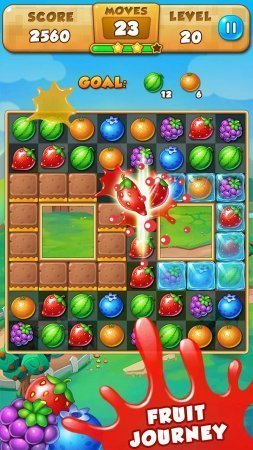 Fruit Journey – проследуй в занимательное путешествие по разносторонним мирам, которые заполнены фруктиками. Твоей главной целью в игрушке есть собрать по тир и выше фруктов в цепочку, меняя их между собой и убирать с игрового поля. Чтобы забрать как можно больший перечень очков и помощь собирая больше чем три фрукта в цепочку и совершай сильные комбо удары. Каждый дальнейший уровень покажет тебе занимательные испытания, в образе непростых конфигураций полей и массы фруктов на них самих. Стремись преодолеть в данной игре не простые уровни за малое время либо же за малое количество твоих ходов. Получай замечательные бонусы, которые будут тебе помогать в игрушке и насладись манящими веселым игровым процессом.