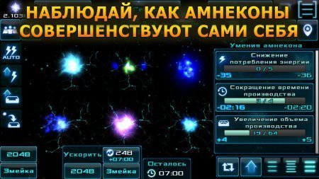 Amneka – космическая экономическая стратегия, переносящая вас во вселенский простор. Вы, космическое пространство, которое нуждается в увеличении и наращивании своей мощности, за счет создания ячеек – амнекоидов, так называемой энергии для вселенной. Как оказывается, вы владеете одной из таких ячеек, и ваша цель преумножить её для дальнейших продаж. Побочная игра 2048, которая ускоряет работу амнекона станет для вас приятным бонусом. Это отличнейший шанс построить, развить и занять лидирующие позиции производства в космосе.