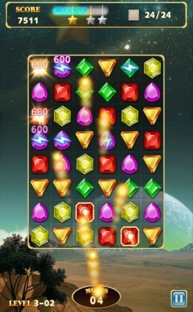 Jewels Star 3 – классическая игра из категории три в ряд, которая не нуждается в представлении. Объединяйте похожие камни, соединяя их в ряды или же столбцы, чтобы пройти порядка 160-ти уровней. Используйте бонусные камни, добытые при слиянии и трансформирующихся в бомбы, молнии и энергию, для получения большего выигрыша очков. Соберите свой уникальный ряд и получите за это награду.