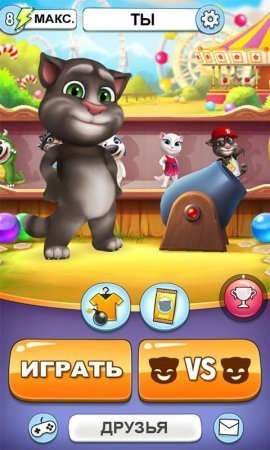 Говорящий Том снова в строю и на этот раз вам не придется за ним присматривать и ухаживать, а предстоит в Talking Tom Bubble Shooter взрывать разноцветные пузырьки. Приготовьтесь отправится в увлекательное турне данной игры вместе с Томом и его друзьями, лопая пузыри на каждом уровне. Сражайтесь со своими друзьями или же играйте в одиночную компанию, открывая новых смешных персонажей. Старайтесь взрывать огромное количество пузырей одним попаданием, для получения дополнительных бонусов и внушительных наград.