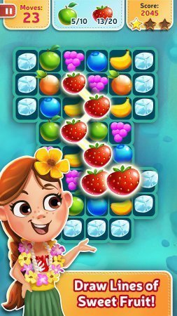 Tropical Twist - очередная разработка известной японской студии SQUARE ENIX, представляющая собой - один из вариантов веселого путешествия в тропических локациях для Андроид. Простой классический сюжет, состоит в соединении одинаковых фруктов и образовании непрерывной линии, в результате чего они взрываются и происходит начисление очков. Когда игровое поле очищается от фруктов, открывается новый уровень. Выполнение задания минимальным количеством ходов дает возможность получить усиление и пройти уровень намного быстрее. Красочная графика, возможность соревноваться и общаться с друзьями позволит внести игру в список самых любимых, а простота захватит максимальную аудиторию геймеров. Русский язык присутствует.