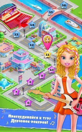 Rockstar Girls - Rock Band – занятная игрушка на системе андроид, в которой ты будешь помогать начинающим рок исполнителям собрать собственную группу. Тейлор и ее подружки разработали собственную рокерскую банду, и теперь им необходимо проследовать на первый собственный концерт. Твоя цель помочь всем героиням собрать сумку с вещами и в нужное время появиться в аэропорту. Точно справься с указанной задачей и выбери для героинь самые превосходные и яркие наряды. Набери целый зал собственных поклонников и исполняй новенькую и молодежную музыку. Исполни все миссии, которые предусмотрены в представленной игре, и его играй с товарищами в такую занятную игру.