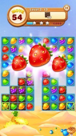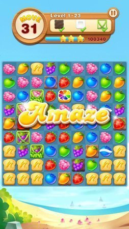 Crazy Fruit является одной из самых интереснейших игрушек, относящихся к любопытному жанру "три в ряд". Вам необходимо отправиться в настоящие приключения. Игровой мир представляет собой необычную фруктовую страну. Вам необходимо собрать самую длинную цепочку из фруктов, чтобы в результате взорвать её посредством цепной реакции. За это вы будете получать всевозможные бонусы, которые сделают вас сильнее и помогут пройти более сложные уровни. Вам необходимо справиться со всеми предлагаемыми 144 уровнями сложностями, выполнить поставленные задачи и стать лучшим. К сожалению, отсутствуют поддержка в интерфейсе привычного для нас русского языка.