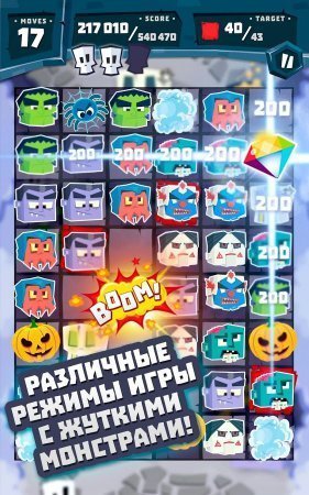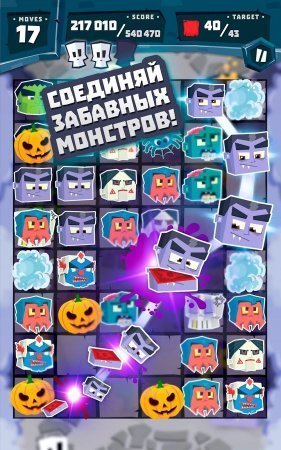 В игре Nights with Horror Cubes - нужно уничтожать различных монстров и вампиров, но весьма необычным способом. Они приняли форму кубиков. Нечисть выстраивается в один ряд, не меньше чем по три штуки. Но монстры или вампиры должны быть одной формы, тогда они взорвутся и остальные поменяют дислокацию. У игры сто уровней, проходя по ним и выполняя всё более сложные задания, можно собирать различные бонусы и умения, которые облегчат проход следующего уровня. Проходя уровень необходимо получить некоторое количество баллов. Забавная графика головоломки понравится многим и внесёт разнообразие, управление простое. Русский язык: да