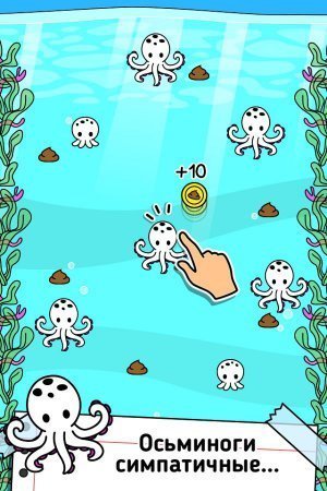 Octopus Evolution - Clicker - ещё одно творение от студии разработчиков Top Apps and Games, относящееся непосредственно к игровой серии Evolution. Как вы уже и сами догадались по названию, это банальный кликер для платформы android. В седьмой раз разработчики создали игровой мир с морскими обитателями - на этот раз с осьминогами. Вам необходимо создавать сочетания пойманных существ, и тем самым вы будете порождать новые разновидности и популяции осьминогов. Примечательно то, что на этот раз количество морских существ увеличено в разы.