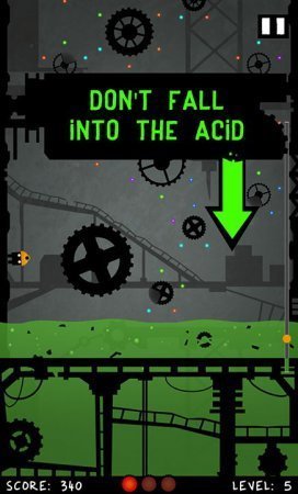 Wheels Of Survival - очень интересная игра. Вы должны помочь шахтеру выбраться из шахты с кислотой. Уровней много, и они все отличаются друг от друга. Управление очень простое, Вам нужно перемещать шахтеры по различным платформам. А делать это нужно очень быстро, ведь шахта заполняется кислотой. Если вы будете собирать шарики светящийся желтым светом, то это поможет немного приостановить кислоту. Игра постепенно набирает сложность, что не даст Вам расслабиться. Русскоязычная версия игры отсутствует. Хотите побыть в роли шахтера? Тогда испытайте адреналин своего героя, убегающего от кислоты.