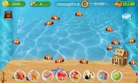 Fish Live – красивый и яркий симулятор замечательного аквариума в твоем девайсе. Можно сказать, что это такой себе рыбный тамагочи – ты начнёшь с совершенно пустого аквариума, в которого приобретаешь парочку рыбок, смотря по собственному бюджету и непосредственного уровня развития. Далее ты начинаешь ухаживать за собственными виртуальными жителями, наслаждаясь и успокаиваясь видом аквариума. По мере продвижения и роста рыбок в игрушке, тебе будут раскрываться скрещивание рыб и заведение новеньких видов, а еще приобретение новеньких рыбок на базаре и непосредственно украшения аквариума различными крутыми штучками это может быть, как водоросли, ракушки так и кораллы и даже мини кораблики. Игрушка не русифицирована.