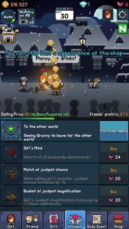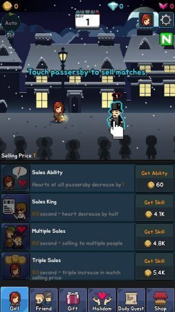 The Little Match Girl: Happy – предельно не часто встретишь в оригинальных аркадах такую игру, линия сюжета начинается вокруг небольшой девочки, которую прогнал на улочку в ночь мороза ее блудный папаша. Очутившись одна зимней ночью, девушка ходила в темноте, до тех пор, пока ей не появилась в облике феи ее давно покинувшая свет бабушка. Бабушка дала внучке колдовские спички, которые могли сделать людей более счастливыми. Процесс данной игры представляет из себя что-то по среди кликера и тач аркады, твоя цель нажимать по проходящих людей, указанное количество раз, за это ты и будешь получать денежки, на которые потом можно поднять собственные умения купить плюсовой инвентарь и сделать еще больший перечень людей боле счастливыми, а это значит, что ты получишь еще больше денежек.