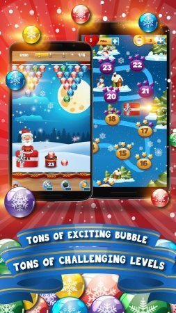 Bubble Shooter - Frozen Puzzle – поработайте помощником самого Санта Клауса помогите ему приблизить праздники и наступление Нового года. Вы стреляете шариками и собираете группы по цветам. Собирая пузыри Вы собираете подарки для детей в его мешок. Освобождайте места для других пузырей, чтобы они могли появится на игровом поле. Получайте бонусы и проходите уровни как можно быстрее. В игре присутствует более 55 уровней различной сложности. Рождественская тематика на протяжении всей игры. Русскоязычной версии игры нет. Помогите Санте, ведь этого праздника ждут не только ребятишки, но и все взрослые.