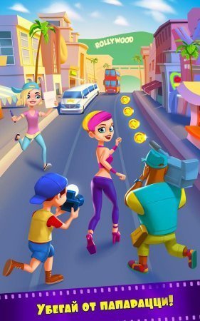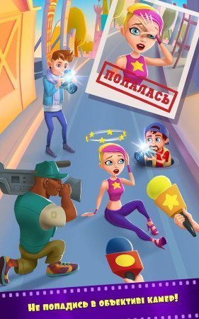 Hollywood Rush – интересный раннер на системе андроид, в котором ты будешь помогать известным персонам убегать от занозливых поклонников. Выбери для себя персонажа и начни стремительно бежать по улочкам городецкого формата. Веди выбранного персонажа вперед и обходи все преграды боком которые будут встречаться на пути. Передвигайся из бока в бок, чтобы не сбить камеры папарации и также и видео камерами тоже. По дороге не пропускай денежки и важные бонусы, к примеру, как реактивные батарейки и еще машинки. Главными преимуществами игрушки выступает – десять известностей шоу бизнеса, пятьдесят неимоверных уровней, шесть разнообразных бонусов и лидерская табличка. Игрушка русифицирована.