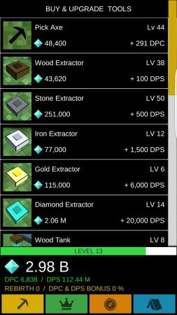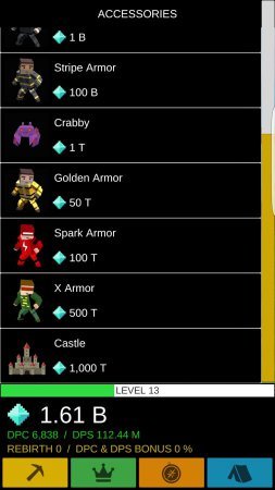 Mine Click – занятный кликер на системе андроид, в ней ты будешь руководить смелым золотоискателем. В данной игрушке твоей главной целью будет нажать на дисплей собственного устройства, как только можно чаще, чтобы персонаж совершал удары киркой по большущему камню, внутри непосредственно которого спрятаны сокровища. Прикасайся к дисплею почаще и с бешенной скоростью, чтобы достать как можно больше золота, драгоценностей разных камней. Чем больше всего ты найдешь, тем больше возможностей перед тобой и раскроется, к примру как приобретение новенького оборудования, для того чтобы облегчать себе работу, купи костюмы для персонажа и его питомцев, чтобы ему совершенно не было скучно. Игрушка принесет радость легким руководством, широкими достижениями и занимательными питомцами. Игрушка не русифицирована.