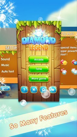 Diamond Legend – игрушка из тематики три в рядок на системе андроид, в котором тебе нужно очистить поле игры от представленных кристаллов. В данной игрушке твоей целью будет собрать перечень из кристаллов как можно подлиннее, и будешь получать за это максимальный перечень очков. Благодаря собственной шустрой реакции как можно шустрее собери цепочки из единого по цвету камушек и само собой очисти его от них самих. В не простых ситуациях используй помощь разнообразных усилений, которые способны очистить поле игрушки одним махом, произведя маленький взрыв. Перемещайся по красивым мирам и насладись неимоверными мирами и парой игровых режимов. Окажись на самом верху лидерской таблички, собрав необходимое количество очков. Игрушка не русифицирована.