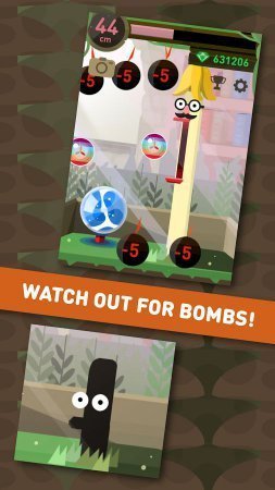 Earthworm Alchemy – занимательная аркада которая будет помогать коротать время. Всегда желал оказаться в облике червя. Вот именно тебе и дается этот шанс. Теперь ты червяк, которому необходимо кушать, как можно больше. Суть игрушку довольно проста, тебе необходимо ловить летящие мимо шары, и становится больше в размерах. Либо-таки совсем наоборот пропускать бомбы, чтобы не продуть. Чем больше ты ешь, тем соответственно длиннее будешь, а если не успеешь собрать конкретный уровень еды, также проиграешь. И все начнется сначала. Сама суть состоит в том, что данные шарики необходимо собирать ртом. И чтобы твой червяк лез в вверх, тебе нужно зажать пальчиком на дисплее твоего устройства. И как только ты его отпустишь он мигом станет меньше. Так что словить шарики будет совсем не просто. Еще в игрушке сохранено много разносторонних скинов, на твоего героя. Определи один из них, и проследуй удлиняться. Игрушка не русифицирована.