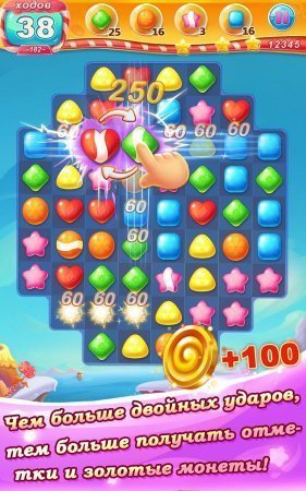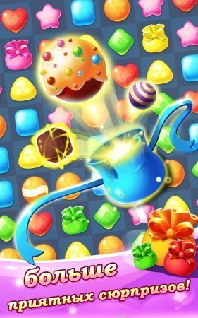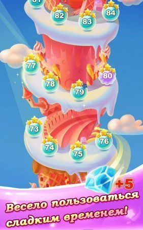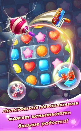 Candy Paradise – интересная игра, жанр которой – три в ряд. Сюжет происходит в сказочном мире, где есть только сладости. Задача игрока состоит в том, чтобы собрать одинаковые по размеру, цвету конфетки и леденцы, тем самым убирая их c игрового поля. Сложностью считается то, что нужно собирать конфетки строго одного цвета. А после того как вы соберете данный цвет, откроется новый, и так будет до бесконечности. Устанавливайте конфеты в ряды и получайте особенные бонусы, именно они помогут вам тогда, когда попадется самый тяжелый уровень. Особенностями игры являются 1000 ярких и неповторимых уровней, у каждой будет своя уникальная миссия. Наслаждайтесь сладостями и супер спецэффектами. Русский язык: да.