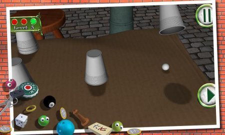 Shell Game – игра наперстки на системе андроид, в которой тебе серьезно необходимо потренировать собственные глаза. В данного рода игрушку в основном играют на улицах и конкретно на деньги, но теперь у тебя есть возможность поиграть в такую занимательную игрушку и понять в каком из наперстков размещен шарик. Задача игрушки состоит в следующем, на столик ставится три либо больше стаканчика, в один из них ложиться шарик и стаканы начинают двигать, стараясь запутать всех. Твоя цель после всех действий, понять в каком из стаканов размещен необходимый шарик. Благодаря данной игрушке ты можешь потренировать собственную память и глаза и верно угадай стакан.