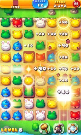Pet Pop – красочные головоломки на системе андроид, где вместо стандартных для тебя шариков выступают разносторонние животные. Набери полосочки из трех и выше зверей, и получи бонусы. Кроме этого игрушка сохраняет довольно красочные эффекты при подрыве длинных полосок. Для облегчения проекта в течении игры ты будешь раскрывать разнообразные бонусы и помощники. Игрушка заинтересует всех любителей красочных головоломок. Игрушка русифицирована.