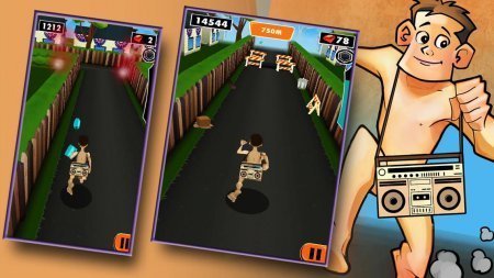 Pee Kay Run – интересный раннер на базе андроид, в котором ты будешь помогать славному герою которого назвали Пи Кей удрать от перекаченного воришки. Данный персонаж залезть в чужой домик, чтобы отыскать для себя там одеяние, но не все так легко как можешь казаться его начал догонять злобный хозяин дома, в который он залез. Помоги Пи Кей удрать от злобного человека, который стремится его догнать. Удирай, скачи и преодолевай все преграды на представленной дороге, а еще не забывай копить денежки и драгоценности по дороге они помогут тебе получить плюсовые бонусы. Это занимательная игрушка, в которой ты проведешь немало собственного времени. Игрушка не русифицирована.