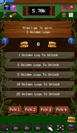 Idle Evolution 2 – это игрушка –кликер. В ней вы усердно будет заниматься добычей древесины. Оказавшись в мире, где запасы дерева не истощимые, а точнее бесконечные, и вашей задачей будет кликать на своё устройство, и добывать этот ресурс. Когда вы добудете его достаточно, то вам откроются новые возможности. Ваша древесина, с помощью действий на планшете или андроиде пройдёт этапы эволюции, а вы при этом получите много бонусов и монет. Возьмите себе помощника и тогда вы только будете контролировать процесс добычи древесины. Прокачивайте ваш уровень и разблокируйте множество различных возможностей. В игре отразится, даже животные мир и многие декорации, которые привлекут ваше внимание. Русский язык: не имеется.