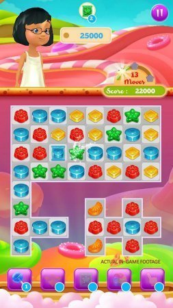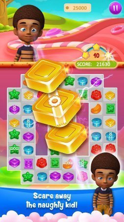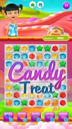 Candy Treats – хороший проект из тематики три в рядок на системе андроид, в которой ты будешь помогать деткам копить конфетки. В данном проекты ты будешь размещён на поле, на котором размещены разнообразные конфетки, твоя цель собрать из них цепочку и взорвать. Будь готов к неимоверному перемещению по колдовской стране и помоги деткам раскрыть совершенно новенькие тип конфетки, исполняя разнообразные возможные задания. Собери цепочки, как только можно длиннее и получи в последствии разносторонние бонусы. Подрывай все возможные препятствия на собственном пути и запусти в действие шикарную цепную реакцию. В данном проекте тебя ожидает уйма разнообразных миссий, интересные герои и широкий перечень бонусы. Игрушка не русифицирована.