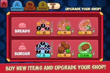 My Burger Shop - Fast Food проект в котором у тебя возникнет замечательный ресторан быстрой пищи. Ты принял решение отрыть личный ресторан, и о нем уже пошли слухи по всему городу и теперь все спешат попробовать мега вкусные гамбургеры или чизбургеры и конечно куда без картофеля фри. Стремись обслужить всех посетителей и угодить их желаниям, прибавляя к гамбургерам солененькие огурцы, сырок, бекон либо помидор и само собой легкие напитки. Заработай побольше денежек, чтобы поднять уровень собственного ресторана, приобретай плюсовые ингредиенты и необходимые приборы и еще конечно куда без оборудования. Занятный проект про ведение шикарного дела. Проект, увы, не русифицирован.