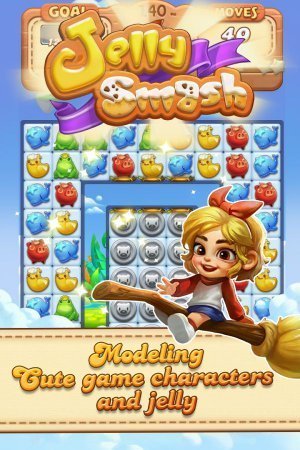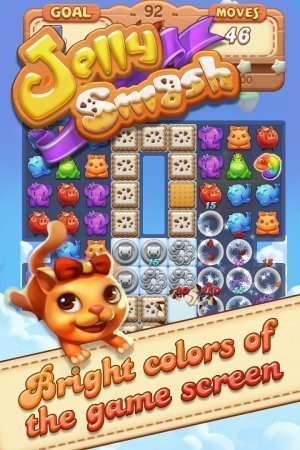 Jelly Smash – приди на помощь небольшой фее подорвать большее количество желейных конфет в такой занимательной игрушке на системе андроид. Собери по три и более конфет в цепочку и подорви их. Перемещайся по разнообразным летающим островкам и устраните конфетки, таким образом продолжая собственное перемещение. Преодолевай предлагаемые тебе уровни за краткие отрезок ходов и собери побольше очков. Совершай комбо удары и прими многочисленные усиления и вознаграждение, которые будут тебе нужны в твоем деле. Играй в данный проект и насладись красивым уровнем, стильной графикой и широким перечнем конфеток. Игрушка не русифицирована.