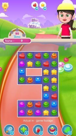 Cake Jam – на пару с центральной героиней проследуй в сладенький мир, проекта из тематики три в рядок. В данном проекте перед тобой раскроется поле, на котором размещены цветные торты и вкусняшки, твоя цель является собрать единые по окрасу сладость в цепочку и убрать их с поля. В данном проекте ты познакомишься с новенькими занимательными персонажами, которые будут помогать тебе в не простых ситуациях, копить длинные цепи из вкусняшек. Используй возможные бонусы и комбо удары и скорее преодолевай уровни, получая по три звездочки на каждом из уровней. Перемещайся по разнообразным мирам и раскрой для себя свыше сотни уровней, которые подарят эмоции разносторонними заданиями. Игрушка не русифицирована.