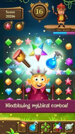 Charm Star – занимательный проект из жанра три в рядок, где ты будешь помогать молодому колдуну, собирать цепочки из драгоценностей. Набери единые по окрасу камешки в длинные полосы и подорви их, и так будут место для других. Стремись собрать самые длинные цепочки из представленных камешек, таким образом, произойдет комбо удар и появятся бонусы и твои достижения. Преодолевай уровни, достигая максимального перечня баллов при этом тратя меньший перечень ходов. Используй колдовские чары и бомбы, чтобы разломать преграды и подорвать все драгоценности на представленном уровне. Преодолей свыше сотни уровней и окажись на самой первой ступени лидерской таблички. Игрушка увы не русифицирована.