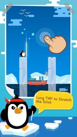 Stick PenPen – Fun Journey – Маленький пингвин захотел совершить путешествие по Антарктике. Путь полон опасностей и ему понадобиться помощь! Продвигается вперед он, перепрыгивая с льдины на льдину. А помогает ему в этом палка. Палка не простая – она меняет свой размер, зависимо от дальности расстояния между ледяными глыбами. В этом и суть игры: нужно точно определить расстояние между айсбергами и, нажав на экран, помочь отважному пингвину преодолеть его. При ошибке он упадет в воду и утонет. Так что, нужно быть внимательным и точным! А если он достигнет финиша, пройдя по всем уровням, то можно установить свой рекорд! Русский язык отсутствует.