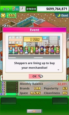 Pocket Clothier – продвижение серии стратегий экономического формата от компании Kairosoft. На данный раз тебе необходимо взять под собственное руководство магазинчик с одеждой. Как и в прочих проектах, входящих в параметры группы создатели реализовали продуманную до мелочи модель экономического формата и саму модель поведения. Тебе же нужно все сделать для того чтобы данный бутик не просто качественно работал, но и улучшался, а для этой цели необходимо приманить максимальный перечень клиентов. Для этих рамок придуманы полные наборы умений, заказывай образцы одежды от самых выдающихся дизайнеров, украшай и вообще обслуживай весь магазинчик, увеличивай размер, придумай акции и сезоны скидок, придумывай одежду самостоятельно, набирай на работу персонал с неимоверными навыками. Кроме этого создатели предоставили игрокам возможность фантазировать.
