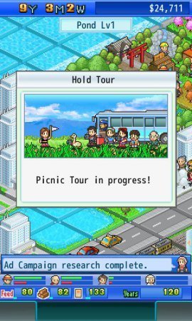 Fish Pond Park интересная стратегия на базе андроид, от знаменитых создателей Kairosoft в которой тебе нужно выстроить собственную базу отдыха. Займись постройкой гостиницы и не одной, территории отдыха и раскрой для себя лично разносторонние достопримечательности, которые понравятся туристам, и они пожелают побывать на твоей курортной базе. Предложи собственным туристам разносторонние развлечения, включая занимательную рыбалку в представленных водоемах где проживают как небольшие мальки, так и не малые рыбки. Расширяя дорогую базу, а еще делай больше пруд для того чтобы там было больше всего. Для постройки в твоем владении будет широкий перечень разнообразных приспособлений и предметов, так что тебе совершенно не когда скучать и отвлекаться.
