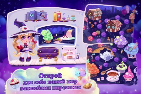 Pastry Witches – интересная верховная ворошка, которая руководила миром Pastry Witches, испортила собственный колдовской свадебный торт. Сгорая от срама, под непосредственным давлением собственных противников, она удрала. Эклипс, замечательный котик верховной ворошки, отыскивает Pastry Witches, которая может ее заместить. Он надеется конкретно на тебя. Он думает, что может стать самым классным из Pastry Witches и прийти к самому высокому уровню. Эклипс медленно будет тебе демонстрировать что необходимо осуществить, и будет вести тебя по всей игре за дорогой хозяйкой.