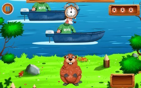 Beaver builder – веселенькая игрушка на базе андроид, в ней ты будешь помогать бобру выстроить собственный маленький домик. Данный бобер принял решение выстроить для себя дом, но вот проблема все бревна для постройки размещены на параллельном берегу, и теперь ему нужно справиться со сложностями плавать с одного берега на иной. А преграды в облике лодок с рыбаками, крокодилов, медведей, лосей и пролетающих пеликанов. Помоги герою набрать все бревна на параллельном берегу и не оказаться в ловушке либо не стать обедом для злобных хищников. Для того чтобы справиться со всеми сложностями примени разноплановые ускорители и колдовство, которое смогут тебе справиться со всеми предложенными уровнями за малый отрезок времени.