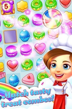 Cookie Fever - Chef game – игрушка на базе андроид, из тематики три в рядок, где тебе нужно будет кормить всех посетителей вкусненькими пирожными и печеньками. В данном проекте ты будешь владельцем замечательной кондитерской с разноплановыми вкусняшками, к тебе будут приходить клиенты, и твоя цель собирать по три и выше в ряд сладостей и устранять их с игрового поля. Стремись собирать максимально возможные рядочки из вкуснятины и принять за это шикарные поощрения. Таким образом, ты скорее можешь справиться с уровнем, накормив всех постояльцев и приняв больший перечень баллов. Примени имеющиеся бонусы для сбора не малого перечня вкусностей и преодолевая всех ступеней. Игрушка сохраняет разноплановые уровни и занимательных персонажей.