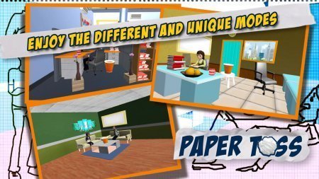 Paper Toss 2015 – занимательный тайм киллер на базе андроид, в нем тебе нужно будет забросить смятый листик бумажки в корзину. Данная игрушка отправит тебя в офис, где для того чтобы не грустить потренируй собственную меткость в бросках бумаги в корзинку. Ты способен бросать мусор в корзины в предложенном офисе, в кабинете главного, в холле и на улочках, определи для себя более яркую локацию и заработай баллы. А еще ты способен бросать бумагу в корзину, в коллег офиса и просто прохожих людей. Тебе может показаться что данная игрушка очень легкая, но это увы не так сложность ее состоит в том, что на каждый полет испорченного листика бумаги будет воздействовать порыв ветра из установленного вентилятора. Заработай баллы и поставь собственный рекорд данного проекта.