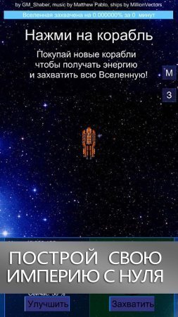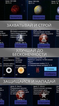 Galaxy Clicker -- замечательная игрушка, в которой тебе нужно буде руководить собственным большим мощным, космическим флотом и завоевывать новенькие цивилизация для себя. Тебе нужно выстраивать новенькие военные корабли, а их ы проекте свыше тридцати, завоевывай более тридцати разносторонних планет. Для этого нужны хорошие навыки верного руководства флотом, а еще в нужное время проводить усовершенствование собственного вооружения. Игрушка имеет русификацию.