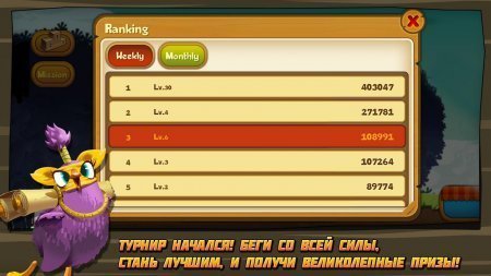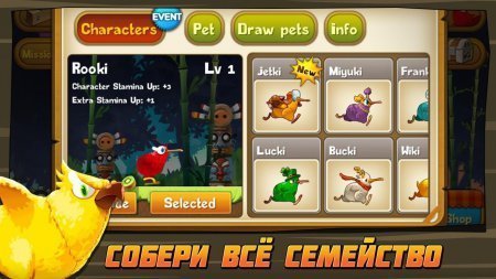 Kiwi Dash -- замечательный раннер на базе андроид от студии Gamevil. Задача проект возвратить похищенный тотем, при этом не пропускать разносторонние фрукты, а еще уклоняться от преград. А еще на твоей дороге будут возникать разносторонние усиления и поощрения. Тебя ожидает занимательное время провождение с отменной графикой. Игрушка не имеет русификации.