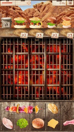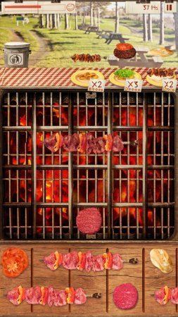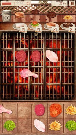 BBQ Frenzy -- очень вкусная аркада на системе андроид. По какой причине вкусная. А вот ответь-ка сам кто любитель шашлыка либо же горячих сосисок, либо чего-то еще вкусного приготовленного на огне. Думаю, что все, за исключением само собой вегетарианцев. Но и они могут насладиться всем широким великолепием приготовления, совершенно не нарушая собственных принципов. Определи для себя продукты от мяса и морепродуктов до сочных овощей и хлебушка, а потом от тебя будет нужна сноровка и способность в организаторстве. Размести все продукты на представленном гриле, внимательно смотри за их приготовлением и порадуй запросы дорогих товарищей. Преодолей все зеленые участки -- от парка до пригородной зоны, примени все типы продуктов, преодолей бонусные задачи и приготовь блюда по определенным рецептам, а еще подбери все трофеи кулинарии.