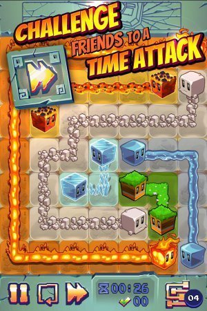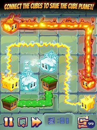 Lost Cubes -- это шикарная головоломка для платформы андроид - отличный тайм-киллер, достойно исполненный и приятный по игровому геймплею. Задача такая -- на игровом поле размещены парные кубы с демонстрацией различных стихий -- вода. Огонь, ветер, лава и не только. Твоя цель прочертить полосу, которая способна сломиться только под прямым углом, от одного куба до его непосредственной пары. Причем сделать это таким образом, чтобы на игровом поле не оказалось ни единого свободного места. Если тебе кажется, что самому со всем этим справиться не просто, всегда на подмогу можно взять подсказку. А также нужно сказать, чем лучше ты пойдешь без подсказок ступени. Тем больше звезд получишь в результате. Масса миров и ступеней -- отменный способ потратить время.
