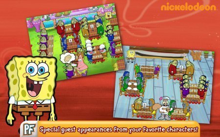SpongeBob Diner Dash -- это интересная игрушка про Губку Боба на аndroid системе. Погрузись в пяти звездочный мирок ресторанного дела. На пару с центральным персонажем стремись накормить всех возможных посетителей, сделай так чтобы они были счастливы. Бери заказы, обслуживай посетителей, забирай собственные чаевые и все это будет происходить в достаточно реалистичном ресторане мира под водой.