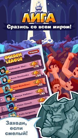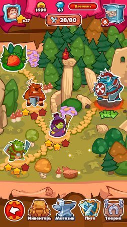 Если вы отважный и смелый, не страшитесь схваток с драконом, готовы штурмовать стены высокой башни, ставьте головоломку с развитием персонажа и совершенствуйте навыки. Приключенческая головоломка ищу героя – раритетная сюжетная линия, непринужденные в прохождении, но динамичные стадии, улучшающий настроение музыкальный фон. Поклонники жанра – скачивайте бесплатный установщик android головоломки: собирайте снаряжение для путешествий, создавайте и применяйте сокрушающие врагов заклинания, присоединяйтесь к лиге высшего статуса.